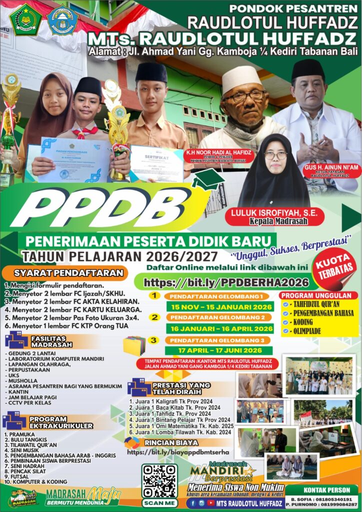 Ayoooo buruan daftar di 🏫MTs Raudlotul Huffadz Tabanan
